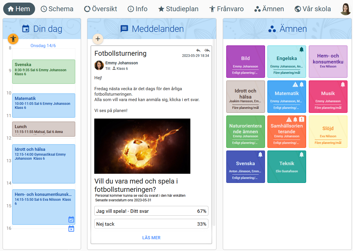 för eleven/studenten, samt tillgång till val för prognos, betyg,