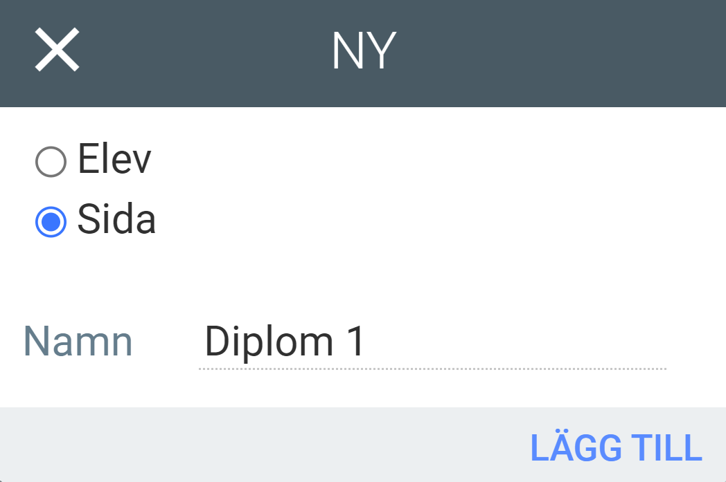 - Välj sedan "sida" och fyll i sidans namn. Namnet kommer inte vara synligt i utskrivet diplom. Tryck "lägg till" för att gå vidare.