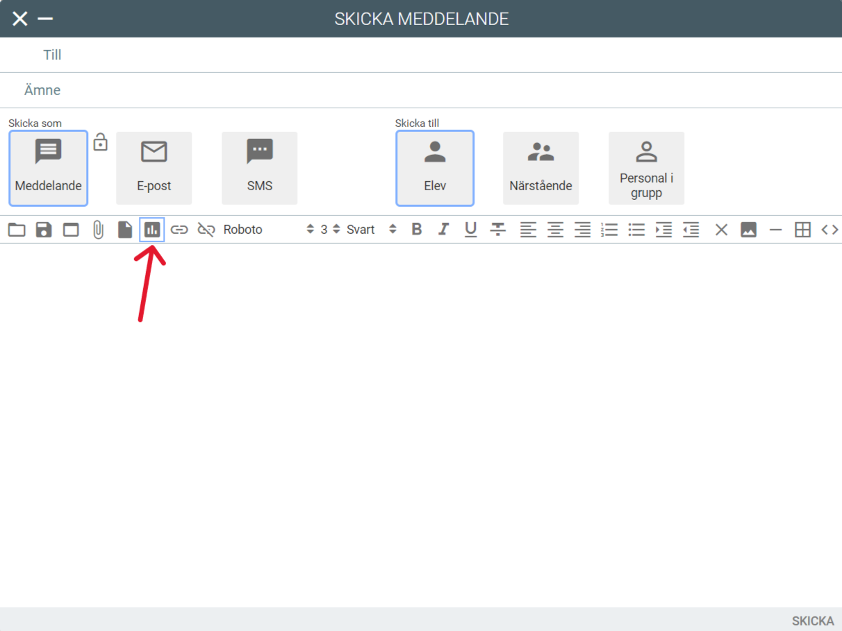 - Öppna rutan för att skicka ett meddelande och klicka på enkätsymbolen poll