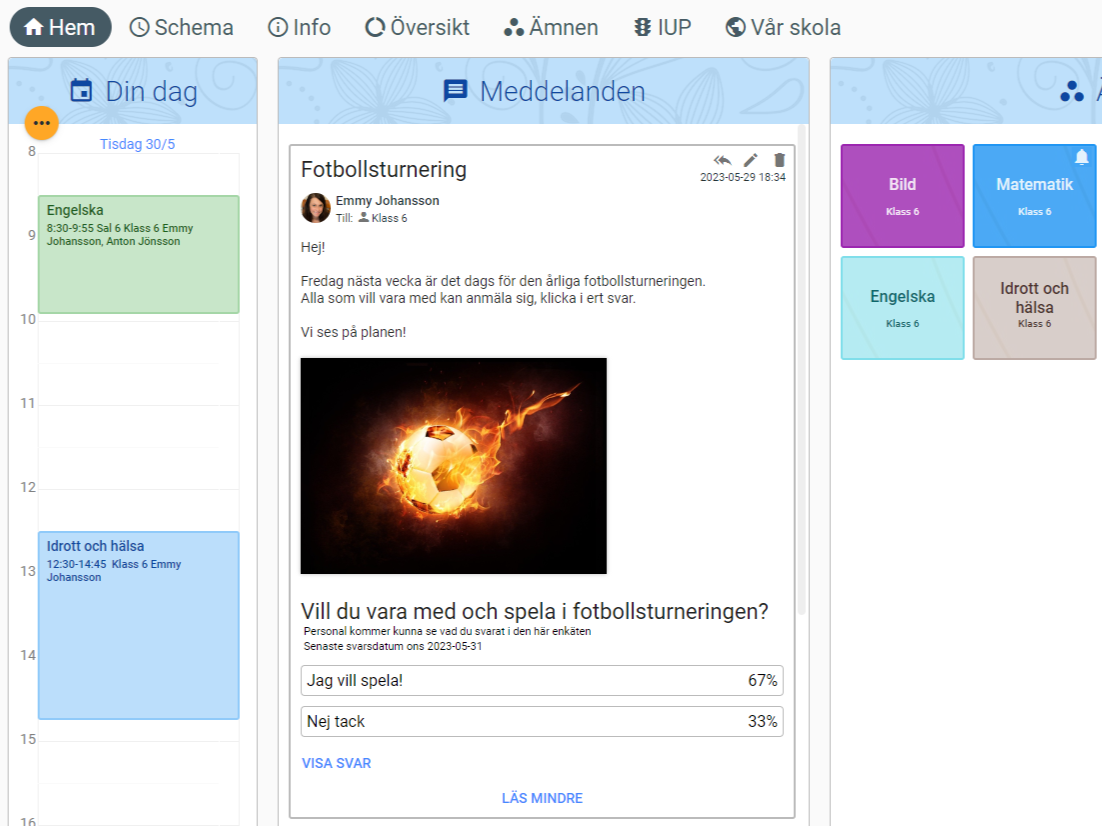 Resultatet kan vara synligt för bara personal eller för alla (elever, vårdnadshavare och personal). Vem som kan se resultatet och vilken typ av resultat som visas beror på vilka