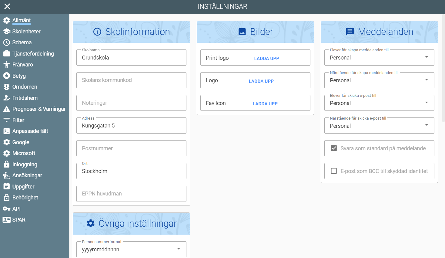 - Skolnamn: Skolans samlingsnamn, kan vara bra att använda om skolan innehåller flera skolenheter