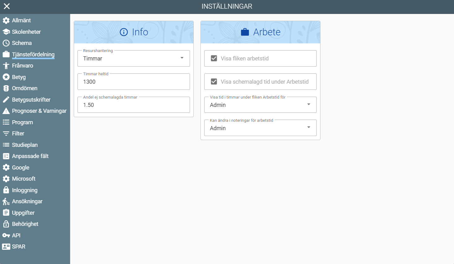 Här kan skolor anpassa inställningar för tjänstefördelning.