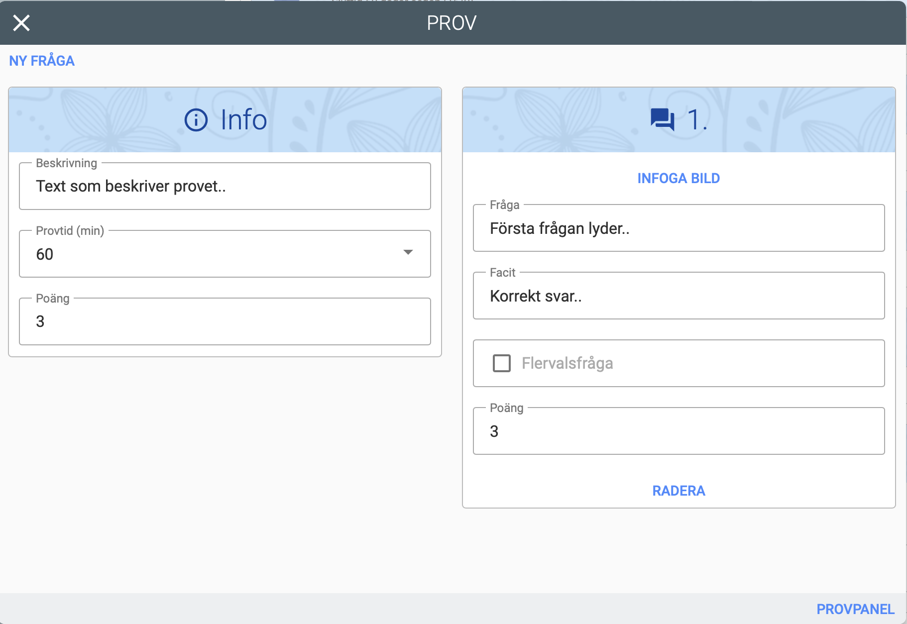 - PROVPANEL - Går vidare till Provpanelen där läraren kan starta provet.
