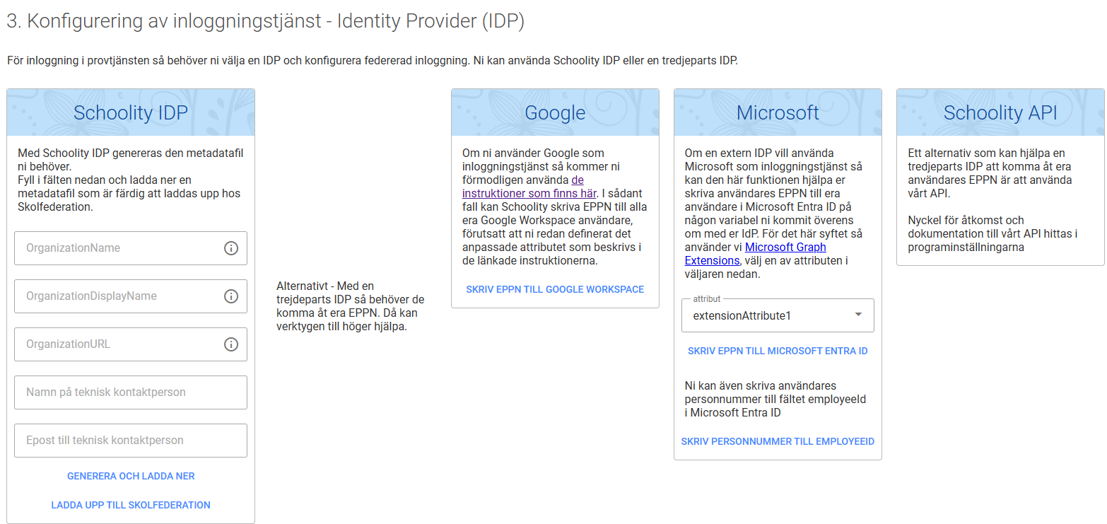 När ni har ett avtal med en IdP behöver de komma åt uppgifter (EPPN) från Schoolity för att kunna