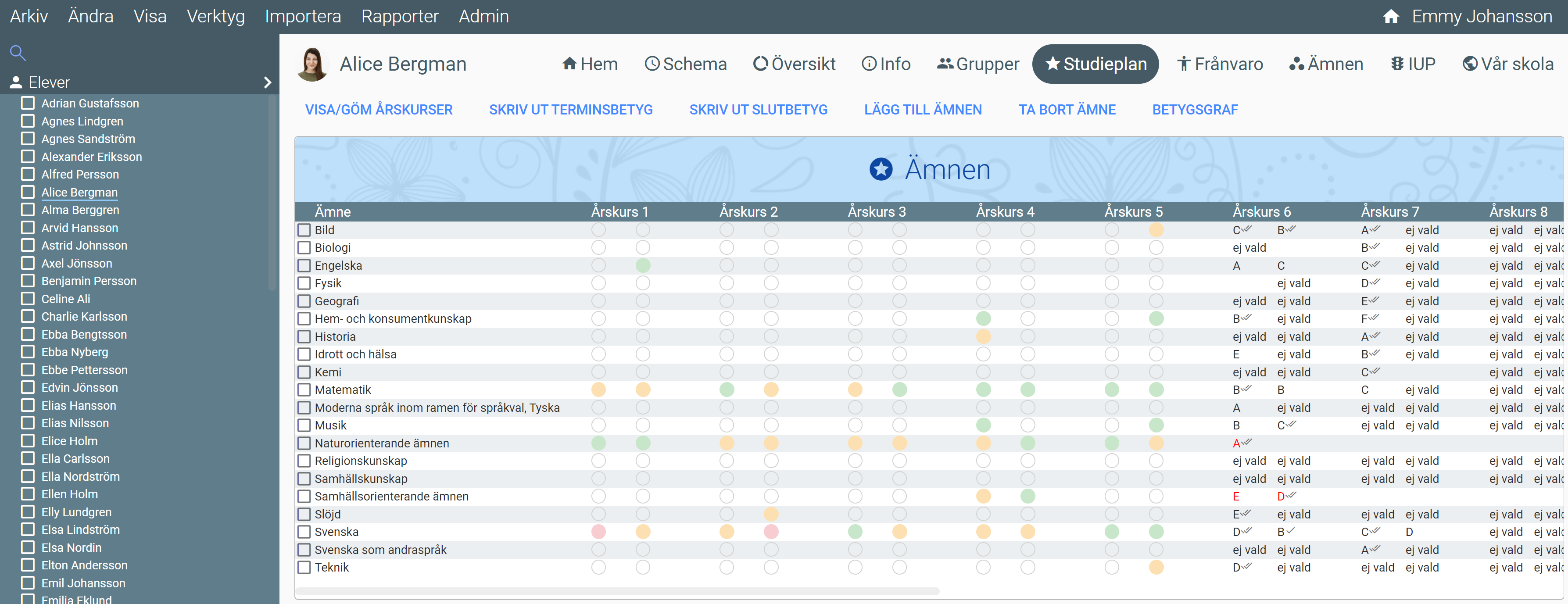 Sätta betyg på elevens studieplan