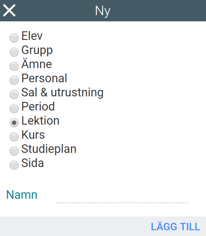Ämnet behöver även ha schemalagda timmar för att lektionen ska synas på schemat. Det finns två sätt att skapa en lektion.