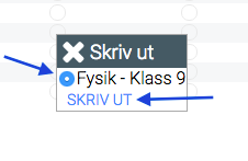 En ruta visas där den aktuella ämnesgruppen listas. Markera ämnesgruppen och klicka “Skriv ut”.