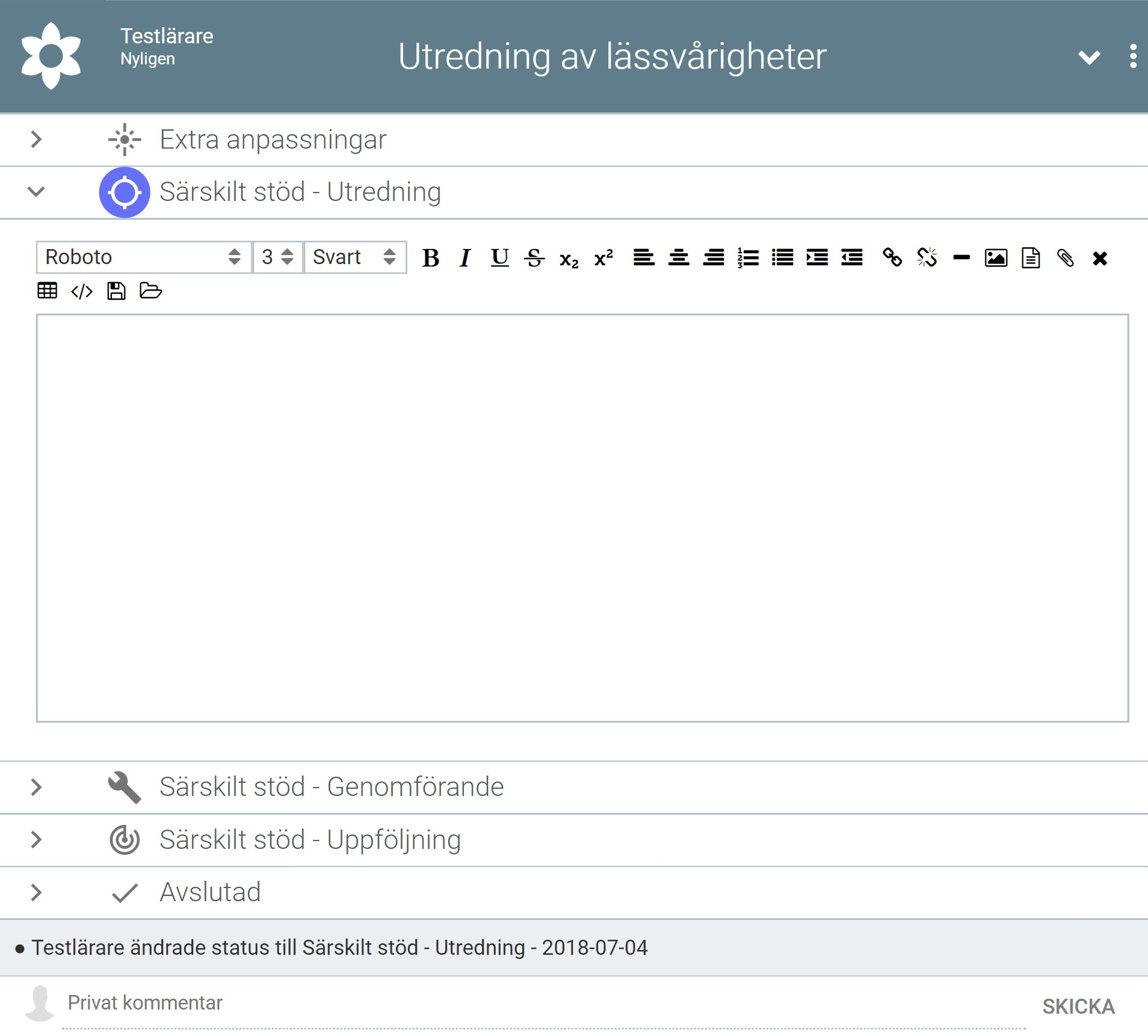 I det här inlägget så kan man markera i vilken status som stödinsatser av någon typ befinner sig i för en elev.